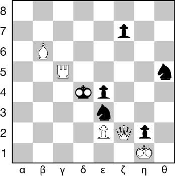 Μία εντυπωσιακή σύνθεση του Ιλ. Τέλκες (1932) με μια ισχυρή πιονοδομή του μαύρου, που όμως δεν θα αποφύγει το ΜΑΤ σε (3) τρεις κινήσεις. Παίζουν τα λευκά.