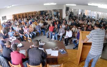 Στην τοποθέτησή του ο εκπρόσωπος των ταξικών δυνάμεων, Γ. Κιούσης, υπογράμμισε πως οι εργαζόμενοι πρέπει καταρχάς να υπερασπιστούν το παραπάνω αγωνιστικό πρόγραμμα με τη συνεχή μαζική τους συμμετοχή στη διαδικασία πραγματοποίησής του. Σημείωσε ότι το μέτωπο αγώνα δεν είναι μόνο ενάντια στην εργασιακή εφεδρεία, αλλά και για την υπογραφή μια ΣΣΕ που θα περιλαμβάνει τους όρους διασφάλισης των θέσεων εργασίας και μισθούς που θα αντιστοιχούν στις σύγχρονες πραγματικές ανάγκες τους. Οτι, ακόμα, ο αγώνας απαιτεί το συντονισμό της δράσης με τους άλλους κλάδους, με στόχο όχι να αλλάξει η κυβέρνηση, αλλά να μην ξαναβγούν ποτέ κυβερνήσεις που θα μιλάνε για απολύσεις και για χτύπημα των δικαιωμάτων των εργαζομένων.