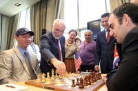 Μια καταπληκτική θέση με τα μαύρα να απειλούν ματ και τα λευκά - στην κανονική παρτίδα - να κάνουν ισοπαλία με 1. Βε4+ Ρθ6 2. Βη7+ κλπ. Πώς κερδίζουν τα λευκά σε αυτή τη θέση;
