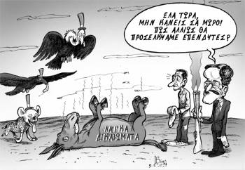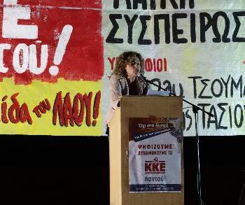 «Στις 18 και στις 25 του Μάη δεν έχουν ραντεβού με τη Μέρκελ. Εχουν ραντεβού με τον ιδιοκτήτη της χώρας. Με τον ελληνικό λαό. Με σας. Που θα τους επιδώσετε την απόφαση της έξωσης. Στις 25 ψηφίζουμε στις 26 φεύγουνε!», επανέλαβε ο Αλ. Τσίπρας, παραλείποντας κι αυτή τη φορά να αναφερθεί έστω λεκτικά στους καπιταλιστές ιδιοκτήτες της οικονομίας και την εξουσία τους που θα μείνουν και στις 26 και με διαχειριστή ΣΥΡΙΖΑ και θα κάνουν κουμάντο στα εργοστάσια, στα λιμάνια, στα βαπόρια, θα επιβάλλουν τη συνέχιση της αντιλαϊκής πολιτικής.
