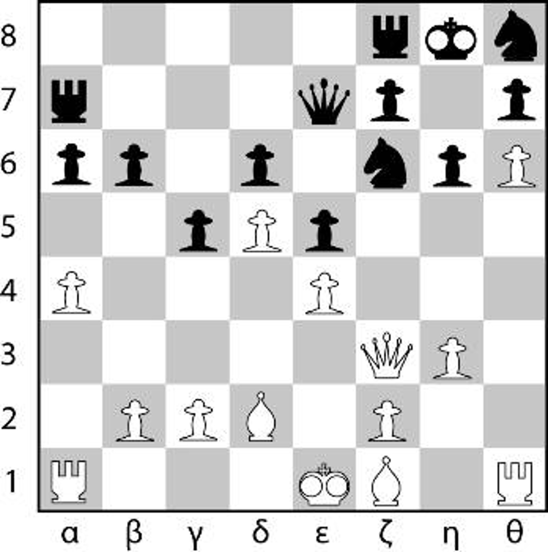 1. ε4 γ5 2. Ιζ3 δ6 3. δ4 γδ4 4. Ιδ4 Ιζ6 5. Ιγ3 α6 6. Αε2 ε5 7. Ιβ3 Αε7 8. Αη5 Αε6 9. Αζ6 Αζ6 10. Βδ3 0-0 11. 0-0-0 Αε7 12. Ρβ1 Ιδ7 13. Ιδ5 Αδ5 14. Βδ5 β5 15. Ββ7 Ιζ6 16. ζ3 Πε8 17. γ4 Αζ8 18. Βγ6 Ββ8 19. Ια5 Βα7 20. γ5 δγ5 21. Ββ7 γ4 22. Βα7 Πα7 23. Πγ1 Πγ7 24. Ιβ3 Πδ7 25. Ια1 Πδ2 26. Πγ2 Πεδ8 27. β3 γ3! 28. α4 βα4 29. Αα6 α3 30. Αβ4 θ5 31. θ4 η6 32. Πε1 Αβ4! 33. Πεγ1 Ρη7 34. Ρα2 Ιη8 35. Πδ2 Πδ2 36. Πγ2 Ιε7 37. Πδ2 γδ2 38. Αε2 Ιγ6 39. Ιγ2 Ιδ4 40. Ιδ4 εδ4 41. ζ4 δ3! 42. Αζ3 Ρζ6 43. η4 θη4 44. Αη4 Ρε7 45. ε5 Ρδ8 46. ζ5 ηζ5! 47. Αδ1 Ρε7 48. θ5 Ρζ8 49. Αζ3 Ρη7 50. Αδ1 Ρθ4 51. Αζ3 Ρη5 52. Αδ1 ζ4 53. Ρβ1 Ρζ5 54. Αζ3 Ρζ4 55. Ρα2 Αζ8 56. θ6 Ρζ6! 57. θ5 Αβ4! 58. Ρβ1 ζ3! Συνεχίστε και κάντε ΜΑΤ με τα μαύρα σε 18 κινήσεις!