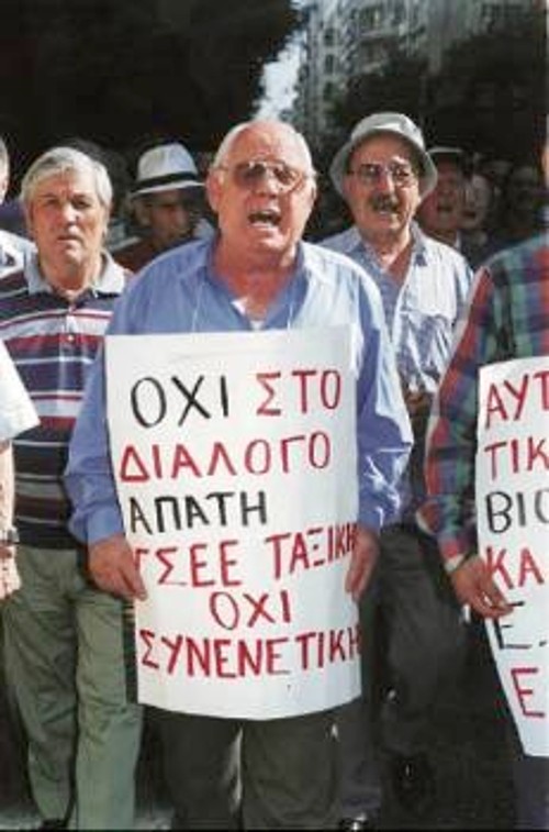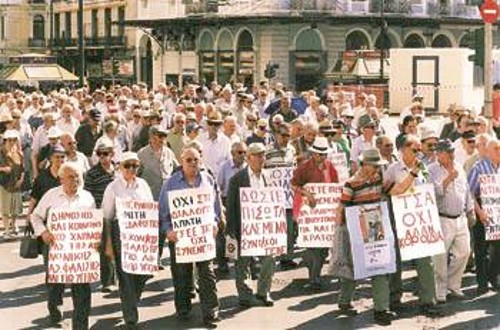 «Η σύνταξή μου είναι 119.000, με αυτά προσπαθώ να ζήσω. Είναι ψέματα ότι δίνουν 152.000, αλλά και τόσα να έδιναν, πάλι δε θα έφταναν με τους γιατρούς και τα φάρμακα που πρέπει να πληρώσω», είπε η Π. Χρυσικού, συνταξιούχους ιδιωτικός υπάλληλος. Ιδιαίτερα καυστικός ήταν ο Δ. Τικόπουλος, συνταξιούχος αυτοκινητιστής: «38 χρόνια δουλιάς, από 17 χρονών παιδί και παίρνω 114.000. Είμαστε απροστάτευτοι από το κράτος. Μόνο με τα ΜΑΤ μας "προστατεύουν"». Ο Η. Σαχσανίδης, χρόνια ναυτεργάτης, μας είπε: «Η σύνταξη δε φτάνει ούτε για τσιγάρα και εφημερίδα. Είμαστε τρεις άνθρωποι στο σπίτι και αναγκάζομαι πολλές φορές να πάρω δανεικά». «Παίρνω 130.000 και ό,τι αυξήσεις δίνουν τις παίρνουν πίσω με τους φόρους. Οχι απλώς δε φτάνουν, αλλά πεινάμε» μας λέει ο Γ. Σπηλιάς, συνταξιούχος σιδεράς. Η Χ. Πολυμερίδου, εργαζόταν ως καθαρίστρια: «Ούτε 200.000 δε φτάνουν για να ζήσουμε με τόση ακρίβεια. Από την άλλη πρέπει να βοηθάμε και τα παιδιά μας που είναι άνεργα». «Αν δεν έχεις δικό σου σπίτι, δε φτάνει η σύνταξη ούτε για να φας. Εχω πρόβλημα υγείας και χρειάζομαι φάρμακα και παράλληλα προσπαθώ να βοηθήσω και τα παιδιά μου», μας είπε ο Α. Ζιώγας, συνταξιούχος τυπογράφος.