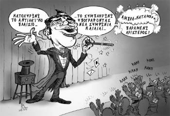 Οι ανακοινώσεις περί «θετικής συμφωνίας» είναι σαν τον ευφημισμό περί «ειρηνικού ωκεανού». Από την ώρα που η κυβέρνηση ανακοίνωσε τα περί συμφωνίας που θα είναι σε θετική κατεύθυνση, μια σειρά παρεμβάσεις στελεχών της φώτισαν ακόμα περισσότερο το αντιλαϊκό της περιεχόμενο. Π.χ. ο υπουργός Οικονομικών δήλωσε: «Οποια ιδιωτικοποίηση έχει εξελιχθεί και είναι νόμιμη θα γίνει σεβαστή». Δηλαδή, τα 14 αεροδρόμια περνούν σε γερμανική εταιρεία, συνεχίζεται η παράδοση του ΟΛΠ στο μονοπωλιακό κεφάλαιο, έρχεται η σειρά του σιδηροδρομικού δικτύου, ενώ το μεγάλο πανηγύρι θα αφορά στο χώρο της Ενέργειας.