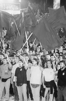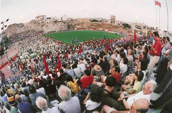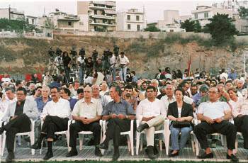 Προσκλητήριο κοινής δράσης και αγώνα προς τους εργαζόμενους και το λαό γενικότερα απηύθυνε χτες η ΓΓ της ΚΕ του ΚΚΕ, Αλέκα Παπαρήγα, μιλώντας στο κατάμεστο γήπεδο της Καλλιθέας. «Δύο επιλογές υπάρχουν, σημείωσε η ΓΓ του ΚΚΕ, αναδείχνοντας τα πραγματικά διλήμματα που στέκουν μπροστά στους εργαζόμενους και παρουσιάζοντας την πολιτική πρόταση του Κόμματος: `Η να συμμορφωθεί ο λαός με τη σημερινή κατάσταση και επομένως να είναι καταδικασμένος να διαπραγματεύεται το πόσα θα χάσει, ή να βάλει πλώρη για έναν επιθετικό αγώνα για τα δικαιώματά του, που θα έχει προοπτική τη νίκη του στο επίπεδο της εξουσίας».