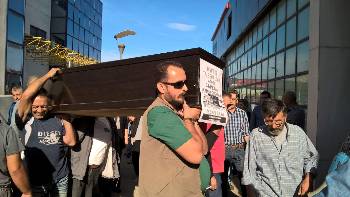 Φοιτητές και σπουδαστές με το πανό του ΜΑΣ έξω από το υπουργείο Εργασίας |