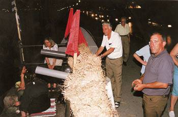 Εργάτες με ειδικές προστατευτικές στολές προσπαθούν να απολυμάνουν το Σεβέζο. Λίγες μέρες μετά το «ατύχημα» και ενώ η πόλη έχει εκκενωθεί. |