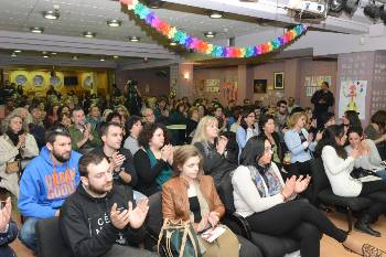 Μια μικρή έκθεση αρχειακού υλικού καλωσόριζε τους προσερχόμενους στην εκδήλωση. Φύλλα του «Ριζοσπάστη» από τις δεκαετίες του 1930 και 1940, ανακοινώσεις και διαταγές του ΕΛΑΣ και άλλα δημοσιεύματα της εποχής, ζωντάνευαν τις καθημερινές μάχες του λαού. «Σήμερα δικάζει η Ιστορία», είναι ένας από τους χαρακτηριστικούς τίτλους του «Ριζοσπάστη» στις 16/3/45, κατά τη διάρκεια της δίκης των δοσιλόγων, που αναφέρεται στο μπλόκο της Καλογρέζας, με τους 22 εκτελεσμένους, έναν ακριβώς χρόνο νωρίτερα. «Κάτι από το ρίγος της θα περάσει ίσως και από την αίθουσα του δικαστηρίου των δοσιλόγων. Σήμερα δικάζει η Ιστορία... Κι αυτή θυμάται...».
