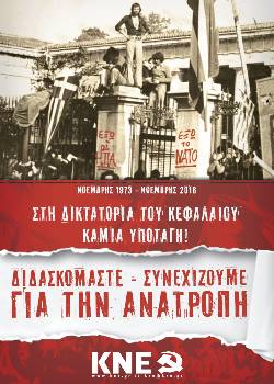 1973 Με ανακοίνωσή του, το ΠΓ της ΚΕ του ΚΚΕ «καλεί το λαό μας να εκδηλώσει μαζικά τη συμπαράστασή του στους φοιτητές». Εξω από το Πολυτεχνείο έχουν συγκεντρωθεί δεκάδες χιλιάδες λαού, ενώ το μεσημέρι ενώθηκαν μαζί τους και αγρότες των Μεγάρων. Οι φοιτητές της Θεσσαλονίκης έκαναν κατάληψη στο Πολυτεχνείο της πόλης. Κινητοποιήσεις έγιναν και στα Ιωάννινα. Το απόγευμα στο κέντρο της Αθήνας, η αστυνομία επιτίθεται στους διαδηλωτές ακόμα και με πλαστικές σφαίρες. Αρχίζουν να στήνονται οδοφράγματα, καθώς και ένα αυτοσχέδιο νοσοκομείο. Ο ραδιοσταθμός των φοιτητών απευθύνει εκκλήσεις στο λαό για ενεργό συμπαράσταση. Μεσάνυχτα: Οι πρώτες στρατιωτικές μονάδες εξέρχονται από τους στρατώνες τους στο Γουδί και το Διόνυσο και κατευθύνονται προς το Πολυτεχνείο.