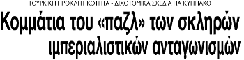 Το χρονοδιάγραμμα από μόνο του προδιαγράφει ακόμα πιο σκληρό παζάρι, νέα κλιμάκωση των εκβιασμών για να δεχτεί ο κυπριακός λαός ακόμα μεγαλύτερες υποχωρήσεις, να συμβιβαστεί με τα σχέδια διχοτόμησης της πατρίδας του που προωθούνται με την πρωταγωνιστική συμβολή ισχυρών ιμπεριαλιστικών κέντρων.