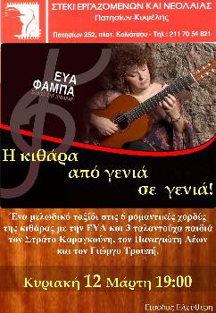 Επιμέλεια έκθεσης: Γεωργία Μάζη, ιστορικός Τέχνης Διάρκεια έκθεσης: 13 έως 19 Μάρτη, Δημοτική Πινακοθήκη Πειραιά (Παλαιό Ταχυδρομείο) Φίλωνος 29, Πειραιάς. Τηλ. επικοινωνίας: 210.41.01.402 - 405. Ωρες λειτουργίας: Τρίτη έως Παρασκευή 10 π.μ. - 2 μ.μ. και 6 μ.μ. - 9 μ.μ., Σάββατο και Κυριακή 10 π.μ. - 3 μ.μ.