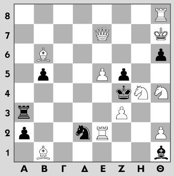 1.Ιζ4! ΑxΙζ4 [αν 1...η1=Β 2.Ιε2+] 2.Πxα3+ Ρβ2 3.Πη3! Αxη3+ 4.Ρθ3! η1=Β πατ