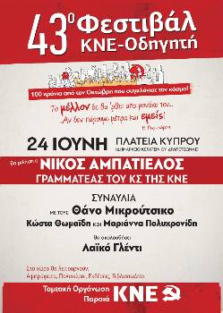Τρίτη 27 Ιούνη: Συνάντηση και συζήτηση νέων καλλιτεχνών στις 20.00. Θα ακολουθήσει συναυλία από το μαθητικό συγκρότημα Nemesis και βράβευση για τον νικητή του διαγωνισμού λογοτύπου.