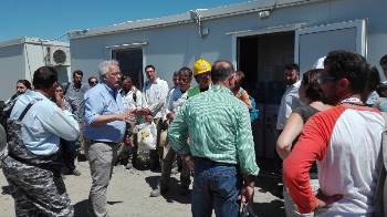 Παρά τα εμπόδια που μπήκαν από την εργοδοσία για να μην έρθει σε άμεση επαφή ο ευρωβουλευτής του Κόμματος με τους εργάτες και τις εργάτριες του εργοταξίου, τελικά μίλησε μαζί τους.