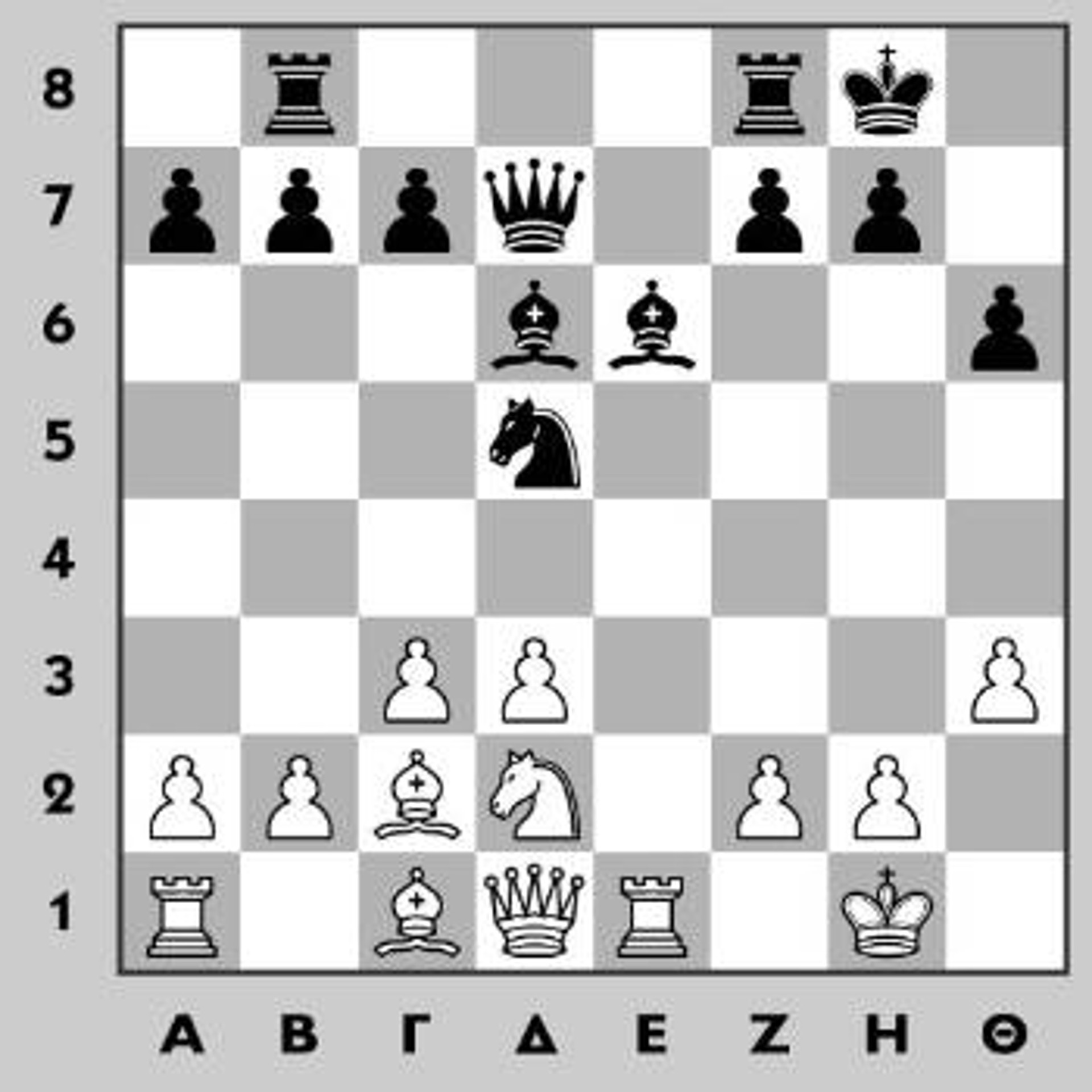 15...Αxθ3! Η καλύτερη πρακτική δυνατότητα για τα μαύρα. Η θέση του Λευκού παραμένει καλύτερη, αλλά χρειάζεται προσοχή και ακρίβεια για να το αποδείξει. 16.ηxθ3 Βxθ3 17.Ιζ1 Πβε8! Το αντάλλαγμα του Μαύρου δεν βασίζεται σε κάποια άμεση επίθεση, αλλά στη δυνατότητα να μεταφέρει περισσότερα κομμάτια στην πτέρυγα του λευκού Βασιλιά, μέχρι να ολοκληρώσει ο Λευκός την ανάπτυξή του 18.δ4 ζ5 19.Αβ3 γ6 20.ζ4! Ρθ7 21.Αxδ5? Ο Λευκός έχει παίξει έως τώρα τις καλύτερες κινήσεις, αλλά αυτό είναι λάθος. Επρεπε 21.Πε2 μεταφέροντας τον Πύργο (ή τη Βασίλισσα) στην άμυνα του Βασιλιά. Π.χ. 21...Ιxζ4 (ή 21...Πxε2 22.Βxε2 Πζ6 23.Αxδ5 γxδ5 24.Ιθ2 Πη6+ 25.Ρθ1 Βη3 26.Αδ2) 22.Πθ2 Βη4+ 23.Βxη4 ζxη4 24.Αxζ4 Αxζ4 25.Πθ4 με καλύτερα τα λευκά και στις δύο περιπτώσεις] 21...γxδ5 22.Πε3 Η διαφορά είναι ότι τώρα μετά από 22.Πε2 Βη4+ δεν υπάρχει το 23.Πη2, αφού η λευκή Βασίλισσα δεν υποστηρίζεται πλέον. 22...Πxε3 23.Αxε3 η5! 24.Ρζ2 Σκοπεύοντας να απαντήσει στο 24.ζχη5 με ...ζ4 και ...ζ3. Π.χ. [24.ζxη5 ζ4 25.Αγ1 ζ3 26.Βγ2+ Ρη7 27.Βζ2 Βη4+ 28.Ρθ1 θxη5 και η απειλή 29...Πθ8 κερδίζει.] 24...ηxζ4 25.Βζ3 ζxε3+ 26.Ιxε3 Βθ2+ 27.Ρζ1 Χάνουν επίσης τα 27.Βη2 Βθ4+ 28.Ρε2 ζ4 και 27.Ιη2 Πη8 28.Πη1 Ρθ8 29.Ρζ1 ζ4 30.Βxδ5 ζ3 31.Βxζ3 Πζ8 27...Πη8! 28.Βxζ5+ Πη6 29.Ρε1 θ5? Το μοναδικό ίσως λάθος του Μαύρου στην παρτίδα. Μετά από 29...Ρη7 30.Βδ7+ Ρθ8 31.Βδ8+ Ρθ7 32.Βδ7+ Πη7 33.Βζ5+ Ρη8 34.Βγ8+ Αζ8 35.Βε6+ Ρθ8 τα σαχ τελειώνουν και ο Μαύρος κερδίζει 30.Ρδ1? Τώρα όμως μετά από 30.Πδ1 και Πδ2 θα άρχιζε μια καινούργια παρτίδα 30...Ρθ6 31.Ιγ2 θ4 32.Ιε1 θ3 33.Ιζ3 Βη2 34.Ιε1 Βη4+ 35.Βxη4 Πxη4 36.Ιζ3 Πη1+! Εντυπωσιακή ολοκλήρωση της παρτίδας, αφού μετά από 37.Ιxη1 το ...θ2 κερδίζει. 0-1