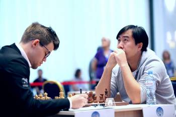 Αναμφισβήτητα, η σημαντικότερη παρτίδα της βδομάδας ήταν αυτή που οδήγησε στον αποκλεισμό του Παγκόσμιου Πρωταθλητή από το Παγκόσμιο Κύπελλο. 1.ε4 ε5 2.Αγ4 Ιζ6 3.δ3 Ιγ6 4.Ιζ3 Αε7 5.0-0 0-0 6.Αβ3 δ6 7.γ3 Αε6 8.Πε1 Βδ7 9.Ιβδ2 Παβ8!? Ο Μπου δείχνει από νωρίς ότι είναι σε δημιουργική διάθεση. Η συγκεκριμένη κίνηση προετοιμάζει το ...δ5, σκοπεύοντας να εμποδίσει την απάντηση Αα4 με ...β5. 10.Αγ2 δ5!? Ο Μαύρος φαίνεται ότι θέλει με κάθε τρόπο να αποφύγει μια «στρατηγική συζήτηση» με τον Κάρλσεν, γι' αυτό και από πολύ νωρίς θυσιάζει πιόνι για να αποκτήσει την πρωτοβουλία 11.θ3 Χωρίς αντικειμενικά να είναι κακή κίνηση, το άμεσο 11.εxδ5 είναι μάλλον απλούστερο, αφού δίνει λιγότερες δυνατότητες στα μαύρα. 11...θ6 12.εxδ5 Ιxδ5 13.Ιxε5 Ιxε5 14.Πxε5 Αδ6 15.Πε1 (βλ. διάγραμμα)