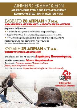-- Στη 1.30 μ.μ., οι Οργανώσεις του ΚΚΕ και της ΚΝΕ στο Εθνικό Μετσόβιο Πολυτεχνείο καλούν σε συγκέντρωση στο Αμφιθέατρο 4 (νέα κτίρια ΗΜΜΥ), με ομιλητή τον Θανάση Παφίλη, μέλος της ΚΕ και βουλευτή του Κόμματος.