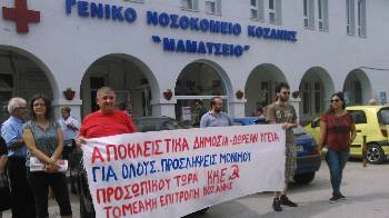 «Η κυβέρνηση, αντί να στελεχώσει το νοσοκομείο με πλήρες, μόνιμο προσωπικό, στέλνει ελάχιστους επικουρικούς γιατρούς, με "ημερομηνία λήξης". Αφού οι συμβάσεις τους ανανεώθηκαν για λίγους μήνες, παραμένουν απλήρωτοι παρότι τα σχετικά κονδύλια υπάρχουν. Ετσι, παρά τις Υπουργικές Αποφάσεις του Μάρτη και του Ιούνη, που αναφέρουν ότι "η πληρωμή των εργαζομένων θα εξακολουθεί να καλύπτεται μέσω του προγράμματος δημοσίων επενδύσεων", η πληρωμή των εργαζομένων κολλάει στον επίτροπο του Ελεγκτικού Συνεδρίου, που κρίνει αντισυνταγματικό το δικαίωμα στη δουλειά και μη νόμιμη την πληρωμή τους και έχει παραπέμψει το ζήτημα στο κλιμάκιο Προληπτικού Ελέγχου Δαπανών του Ελεγκτικού Συνεδρίου. Βέβαια, το ζήτημα της πληρωμής των δεδουλευμένων θα μπορούσε να λυθεί με παρέμβαση της διοίκησης του νοσοκομείου από τα αποθεματικά του. Επιβεβαιώνεται για μία ακόμη φορά η αθλιότητα των ελαστικών εργασιακών σχέσεων. Κυβέρνηση - διοίκηση - επίτροπος κάνουν μπαλάκι τους εργαζόμενους», καταγγέλλει η ΕΣΑΚ - ΔΕ.